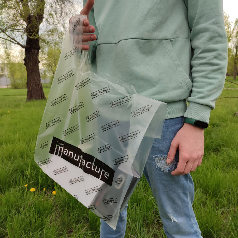Ми виготовляємо «майки» у різних розмірах — від компактних до XL. З ручками, що не врізаються в руку, і поліетиленом, що тримає форму.